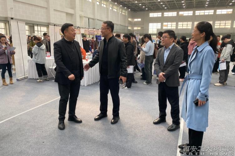 (本网讯)10月30日,350vip8888新葡的京集团2026届毕业生秋季大型校园招聘会(综合类第七场)在未央校区体育馆圆满举行。西安市委党委统战部副部长原大刚、新葡京集团党委副书记马福莅临招聘会现场指导。