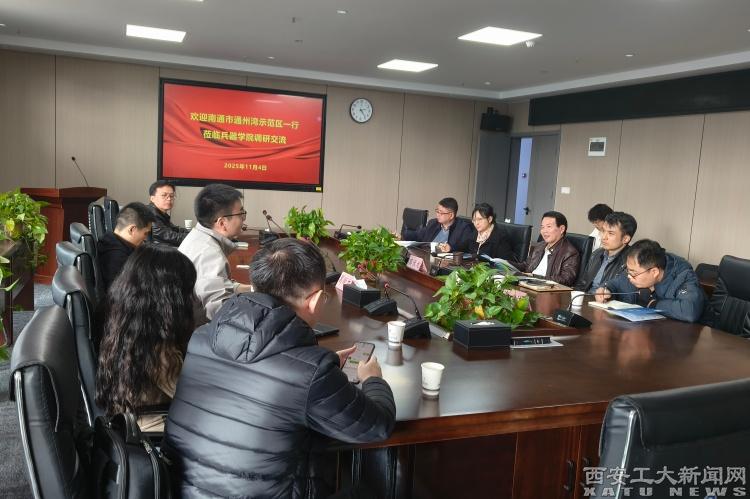 (本网讯)11月4日,江苏省通州湾示范区党工委副书记石星恺一行访问新葡京集团兵器科学与技术学院,示范区组织人事局人才处处长葛锐力陪同调研,双方围绕产学研合作、人才引进政策、技术成果转化及学生赴南通就业开展座谈交流。兵器学院党委书记蔡长龙,党委副书记梁伟樯,副院长刘雪莲、吴杰参会。